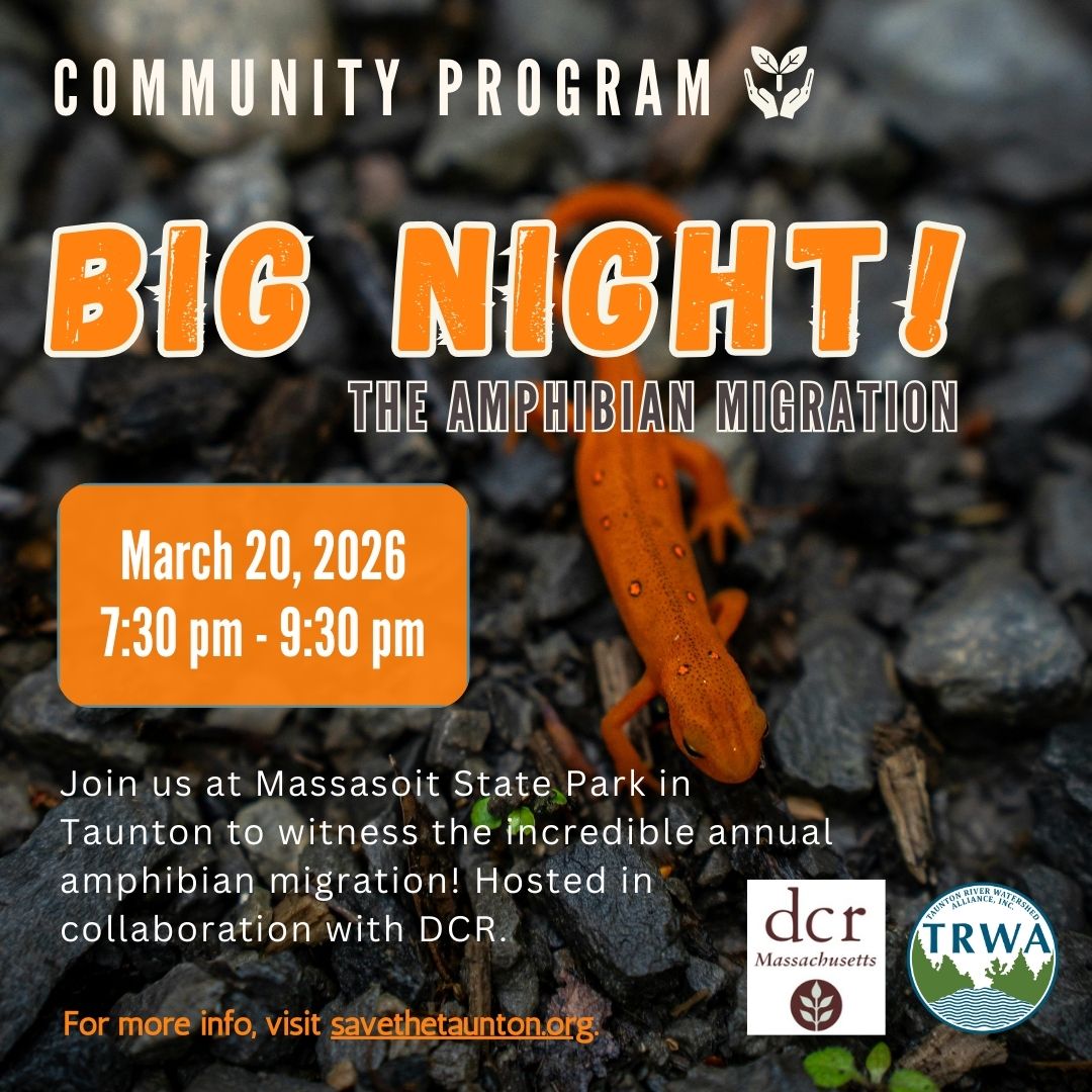 Join DCR staff and educators from the Taunton River Watershed Alliance (TRWA) to witness the incredible annual amphibian migration. Every year frogs and salamanders wait for a warm, damp night to move from the forest into ponds and pools, where they will mate and lay their eggs. As we walk we’ll keep our eyes and ears open for signs of these slimy creatures.
